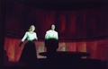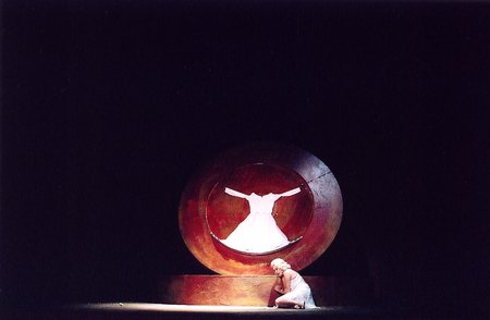 ...Das Bühnenhalbrund mit den vielen Türen fürs lauschende Volk, die Boten und die hohen venezianischen Gäste, dieser geschlossene Raum mit dem großen runden Tisch in der Mitte, der bei Bedarf eine Fontäne aufsprudeln lässt oder angekippt - wie eine Zielscheibe - zum tödlichen Nachtlager Desdemonas wird, dieser Einheitsraum, der sich oben manchmal wie ein Visier öffnet und Stufen freigibt, könnte eine Arena sein, ein Innenhof oder eben ein Labor für diesen Fall des selbstvernichtenden Außer - sich - Geratens. Hier wird die Raserei nicht einfach "vorgespielt", sondern nachfühlbar gemacht...
